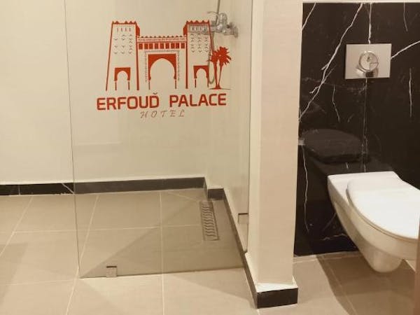 Spacieuse et confortable, cette chambre double offre un lit double, une salle de bain privative et tout le nécessaire pour un séjour agréable. Idéale pour se détendre après une journée de découverte à Erfoud, elle allie confort et praticité pour vos voyages en couple ou entre amis.